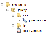 Working in JSF with JavaScript resources seems to be a pretty simple task. Starting with JSF 2.0, all the web resources, such as CSS, JavaScript, and images are loaded from a folder named resources, present under the root of your web application or from /META-INF/resources in JAR files. A folder under the resources folder is known as a library or theme, which is like a collection of client artifacts (e.g. your company name). After we build the resources folder structure and add the JavaScript resources, we simply plug in the <h:outputScript/> tag into the XHTML page.