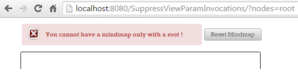 http://.../SuppressViewParamInvocations/?nodes=root). In this case, we see the error message caused by the custom validator,You cannot have a mindmap only with a root !. This is the expected behavior: