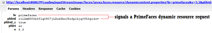 Furthermore, OmniFaces has used these parameters to implement a utility method capable to programmatically detect if the current request is a PrimeFaces dynamic resource request. This utility method returns a boolean value and is named, isPrimeFacesDynamicResourceRequest(). This method can be found in Hacks class, and can easily be used as below: