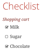 In the next example we define a shopping cart list with Asciidoctor markup: