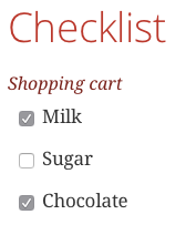 The checkboxes are now simply output in the HTML file. We can add an options attribute to our list to make the checkboxes interactive: