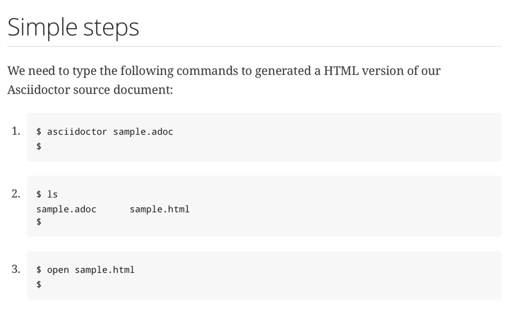 Let's generate this Asciidoctor markup to HTML and we see the following result: