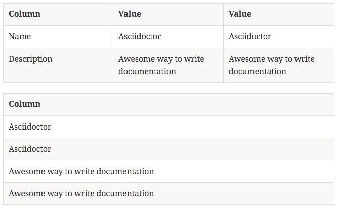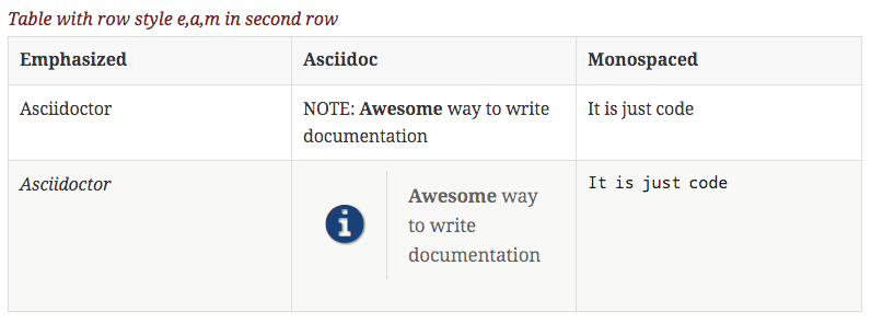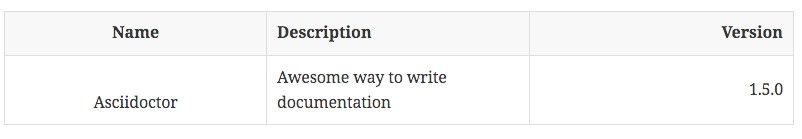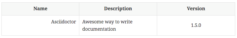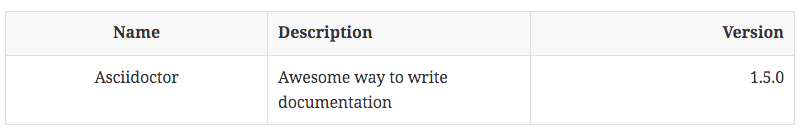 Asciidoctor provides also another way to define the above table: