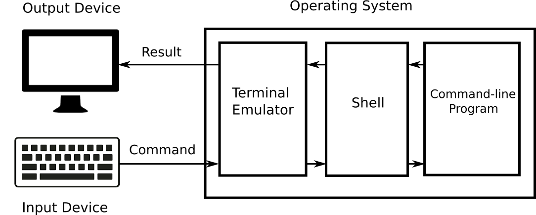 Figure 2-5 explains the interaction between input/output devices, the terminal emulator, the shell and the command-line program.