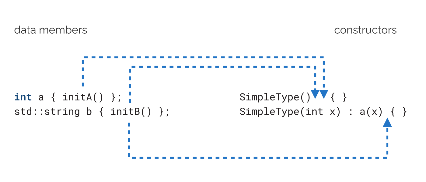 Before C++11, the best way to initialize data members was through a member initialization list inside a constructor. Thanks to C++11, we can now initialize data members in the place where we declare them, and the initialization happens just before the constructor body kicks in.