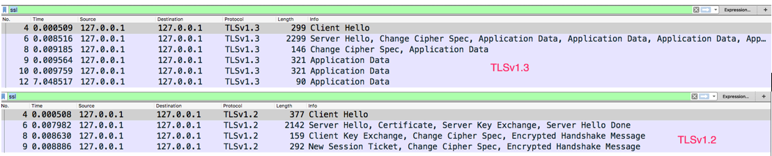 From the Wireshark packet capture, its clearly visible the TLSv.1.3, the number of packets is being reduced this offer better speed in TLS v1.3 , and some of the major changes from TLS1.2 as follows