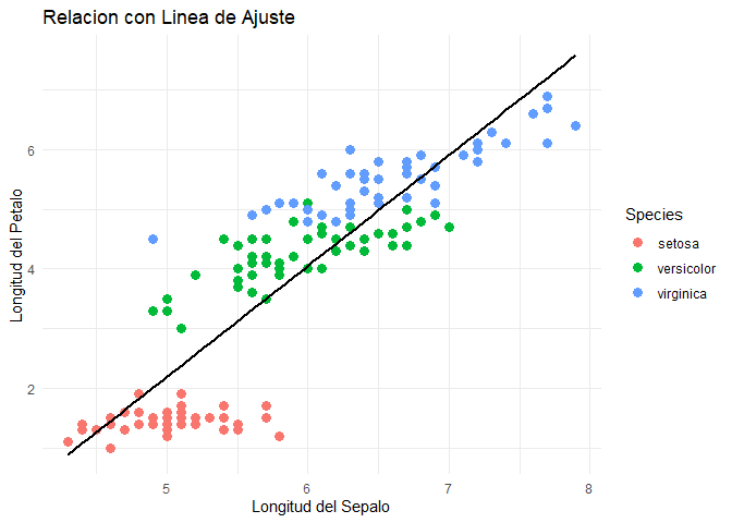 labs(x = "Longitud del Sepalo", y = "Longitud del Petalo", title = "Relacion con Linea de Aj\