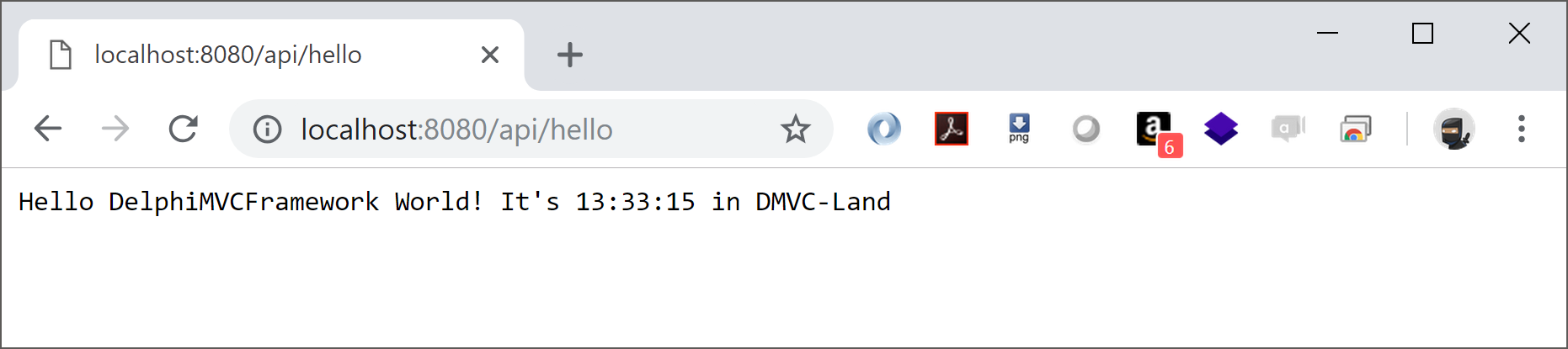 Parabéns! Você acabou de escrever sua aplicação Hello World feita com DMVCFramework!