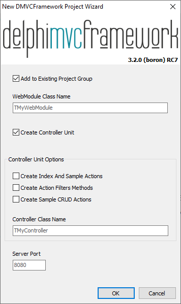 - Launch the DMVCFramework new project wizard dialog, remove all the checks in the group