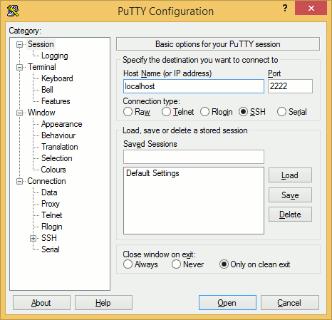 If you’re using NAT with ports forwarded as in the previous section, use “ssh [user name]@localhost -p 2222” e.g.