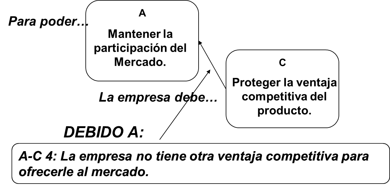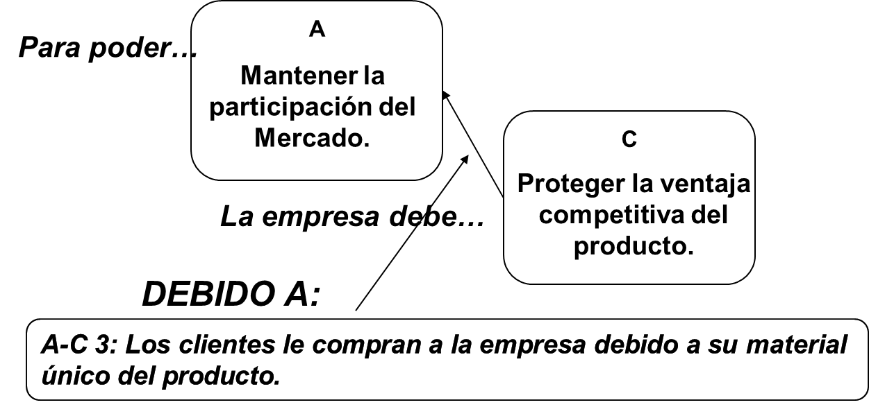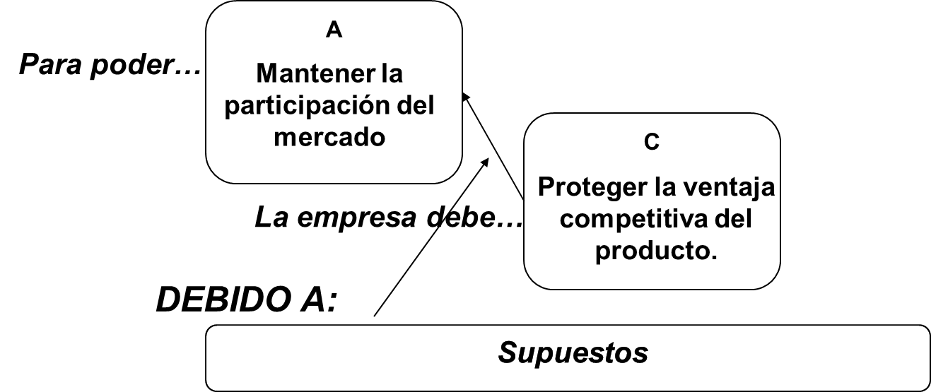 Utilizamos la PREGUNTA DE CHEQUEO de la Regla 4: “¿El supuesto refleja algún mecanismo mediante el cual la entidad en la cola de la flecha (proteger la ventaja competitiva del producto) puede llevar a la entidad en la punta de la flecha (mantener la participación del mercado)?”