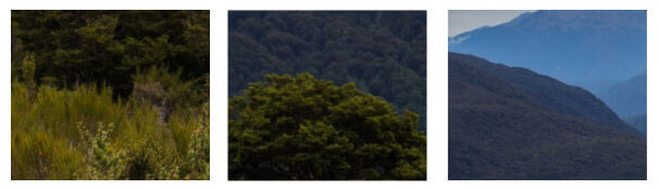 Auf dem ersten Ausschnitt ist der Vordergrund heller, gesättigter und kontrastreicher als der Hintergrund. Im zweiten Ausschnitt ist der Vordergrund zwar schon recht kontrastarm, aber immer noch erheblich kontrastreicher als der Hintergrund, der gänzlich frei von Details ist und zudem einen starken Blaustich aufweist. Der letzte Ausschnitt zeichnet sich vor allem durch den Kontrast zwischen einem dunkleren Farbton im Vordergrund und einem bläulichen Hintergrund aus, der in der Natur bei großen Distanzen durch die dazwischenliegende Atmosphäre entsteht. Diese lokalen Hinweise helfen dem Wahrnehmungssystem, die Szenerie schnell zu erfassen.