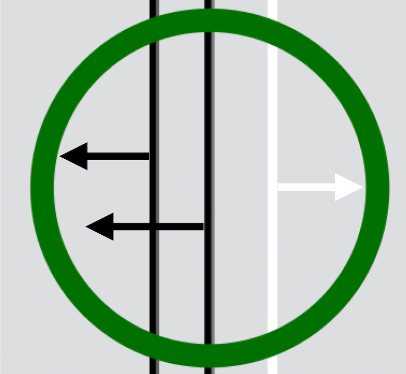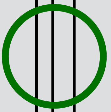 Die Abbildung rechts zeigt den Bereich des Kreises im Ausschnitt, der lediglich drei parallele Linien enthält. Für keine der Linien kann das Wahrnehmungssystem entscheiden, ob hier eine Fläche beginnt oder endet bzw. auf welcher Seite der Kante sich die Gruppe fortsetzt. Viele Interpretationen wären möglich. Dieses Problem lässt sich beheben, wenn zur Gruppierung nicht nur einfache Linien eingesetzt werden, sondern der Eindruck aufeinander gestapelter Flächen erzeugt wird, denn in natürlichen Umgebungen liefert das Licht, das zum Wahrnehmen erforderlich ist, bei gestapelten Objekten wahrnehmbare Hinweise auf ihre Lage zueinander und damit auch auf ihre Gruppierung. Es geht also in der Konsequenz darum, zusammengehörige Bereiche nicht zu umrahmen, sondern visuell zu stapeln. Die Techniken, mit denen diese Stapelung erreicht werden kann, kennen Sie schon. Es sind im Prinzip die gleichen wie die zur plastischen Darstellung von Buttons, die wir Ihnen im Kapitel Bildschirmobjekte bereits vorgestellt haben.
