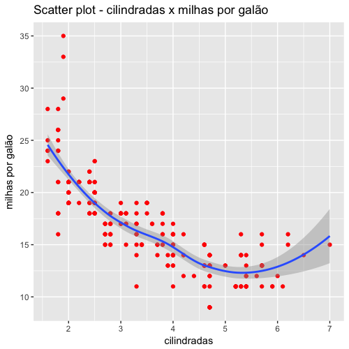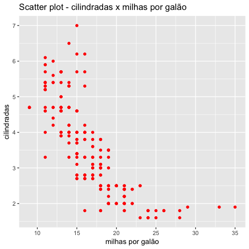 3 ggtitle("Scatter plot - cilindradas x milhas por galão") +