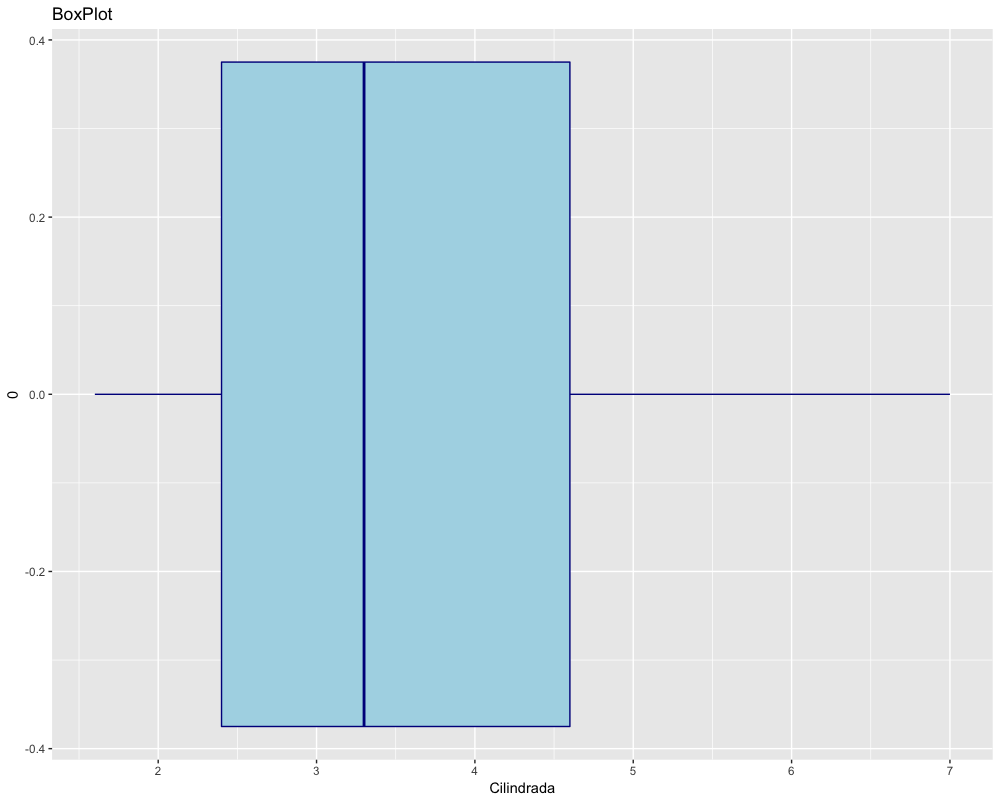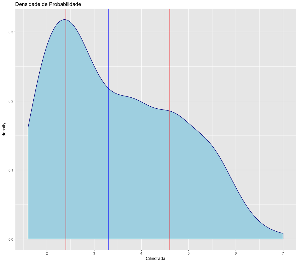 Agora vamos criar um grafico de densidade e um boxplot com os dados da cilindrada para visualizarmos essas medidas. O código abaixo gera os gráficos e coloca esses gráficos nos objetos plot1 e plot2: