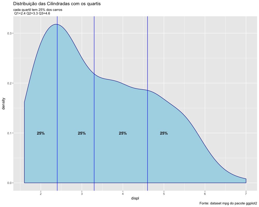 40 labs(title = "Distribuição das Cilindradas com os quartis",