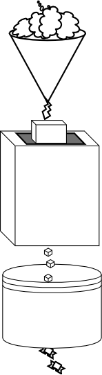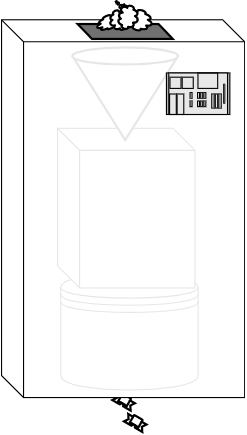One morning, an engineer at the candy factory has a great idea. She figures that it’d be much more efficient if she made an outer box to hide all the wires; on the inside, all three of the machines are hooked up together, and on the outside everything is now neat and tidy. On the top of this fancy new machine is a valve to pour in melted chocolate and on the bottom is a valve that spits out wrapped chocolate candies. Brilliant!