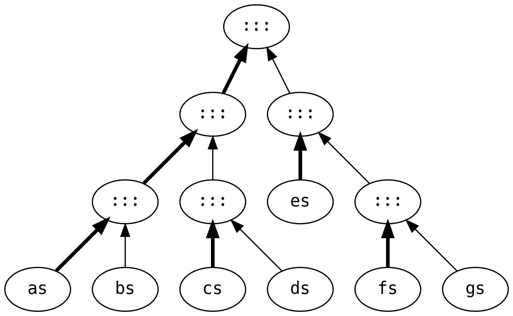 Todas las colecciones presentadas aquí son persistentes: si agregamos o removemos un elemento todavía podemos usar la versión anterior. Compartir estructuralmente es esencial para el rendimiento de las estructuras de datos persistentes, de otra manera la colección entera se reconstruye con cada operación.