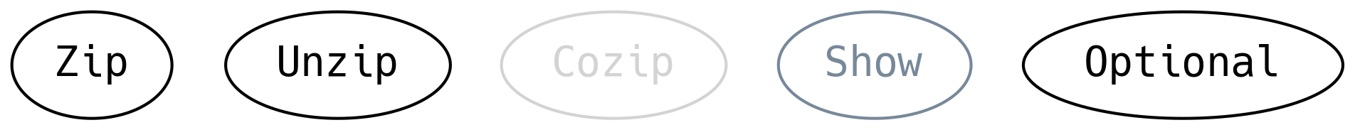 Mimo że nazwa tej typeklasy brzmi Cozip, lepiej jest spojrzeć na jej symetrię względem metody unzip.
