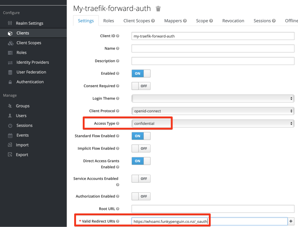 Keycloak recipeHaving an authentication provider is not much use until you start authenticating things against it! In order to authenticate against KeyCloak using OpenID Connect (OIDC), which is required for Traefik Forward Auth, we’ll setup a client in KeyCloak…