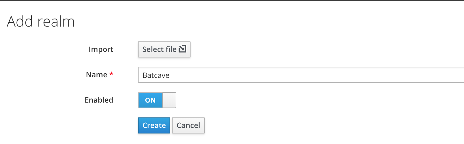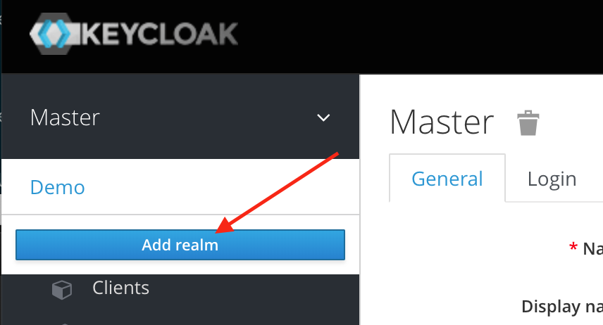 You start in the “Master” realm - but mouseover the realm name, to a dropdown box allowing you add an new realm:
