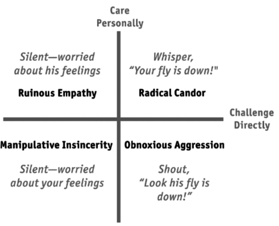 - When you Care Personally, but Don’t Challenge directly: you have Ruinous Empathy (meaning that real feedback is not provided until it is usually too late)
