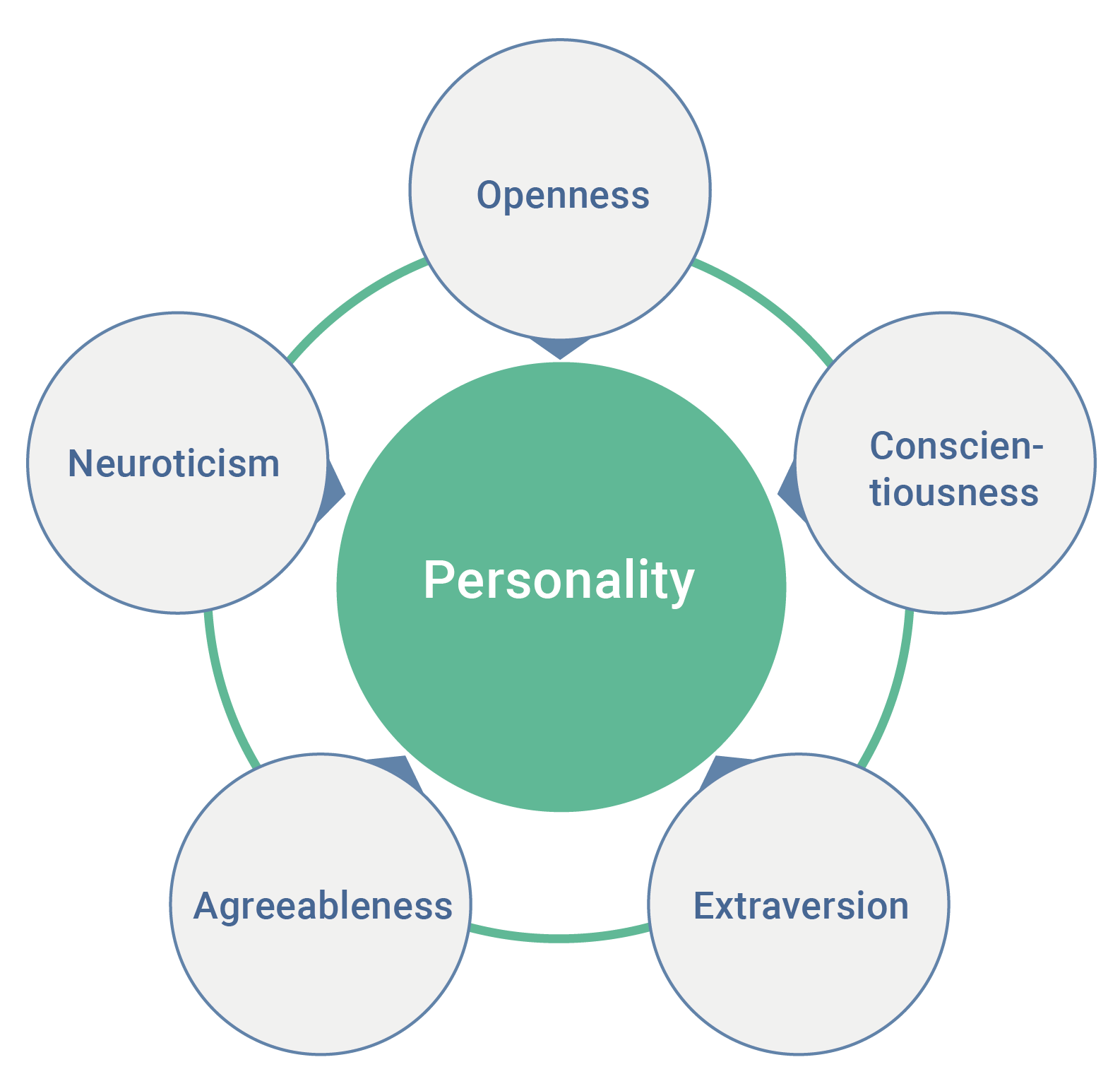 - Openness to experience (inventive/curious vs. consistent/cautious)