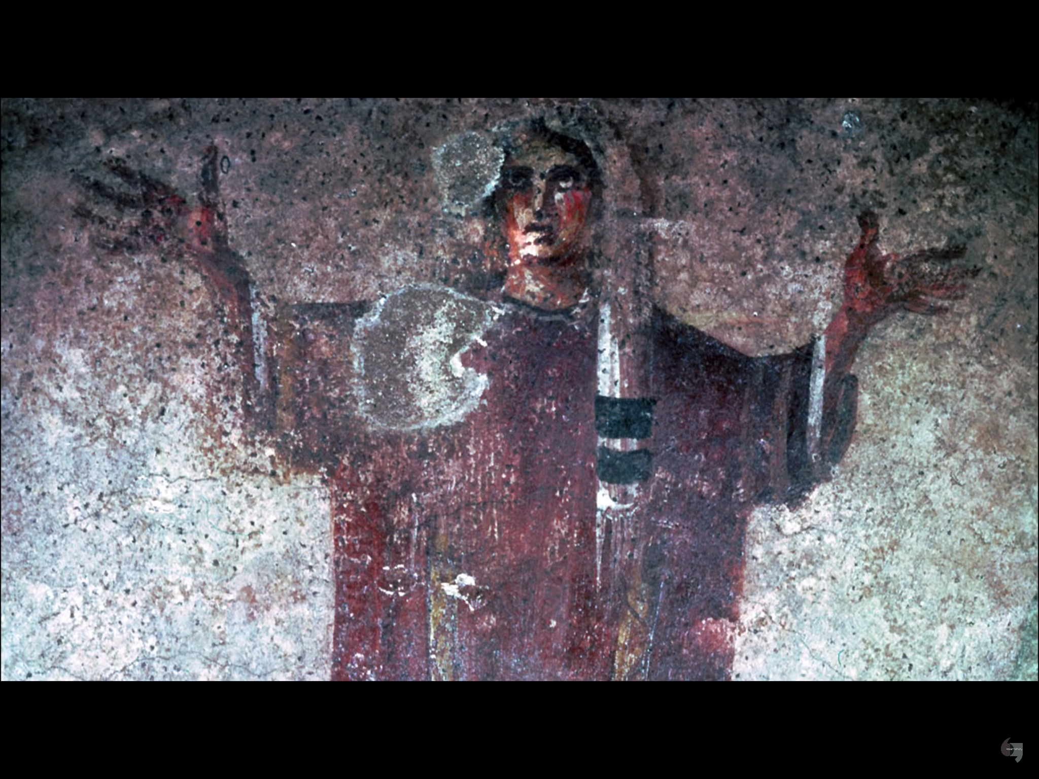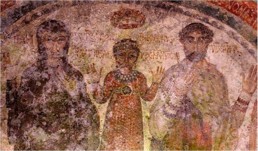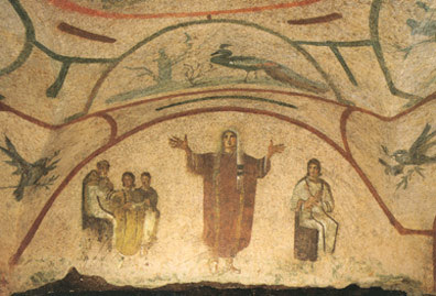 Early Christians sought refuge from Roman persecution in the catacombs. The catacombs are replete with images of men and women worshipping. The men are pictured bare headed, and the women with a simple shawl.