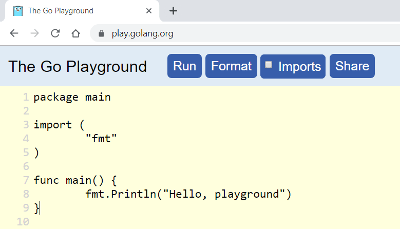 Për testimin e programeve të thjeshta, mund të përdoret Go Playground.