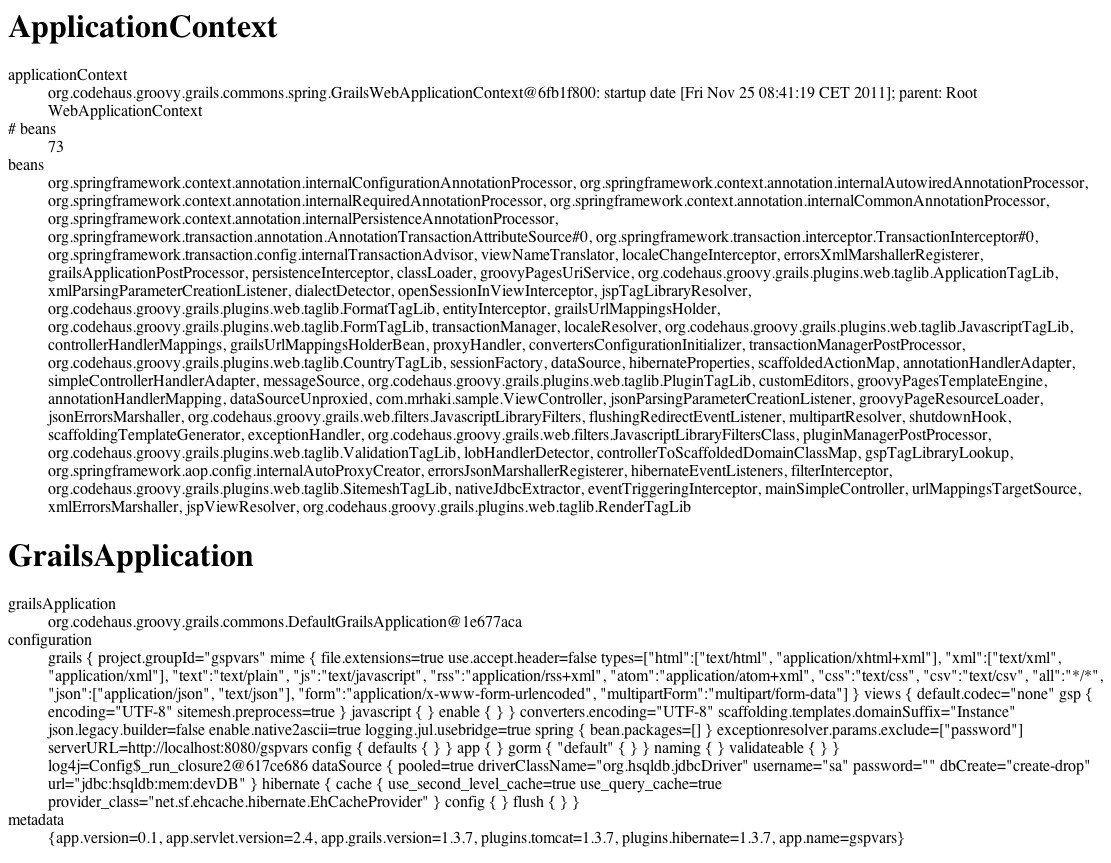 We see the default layout we get from Grails. To see which GSP files Grails uses to generate these pages we only have to invoke one command: