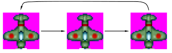 The animations.add() function specified the animation: its name, followed by the sequence of frames in an array, followed by the speed of the animation (in frames per second), and a flag telling whether the animation loops or not. So in this piece of code, we defined the fly animation that loops the first 3 frames of the green enemy sprite sheet, an animation of the propeller spinning: