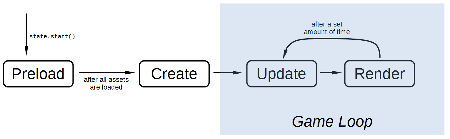 The following is an oversimplified diagram on what happens when Phaser games run: