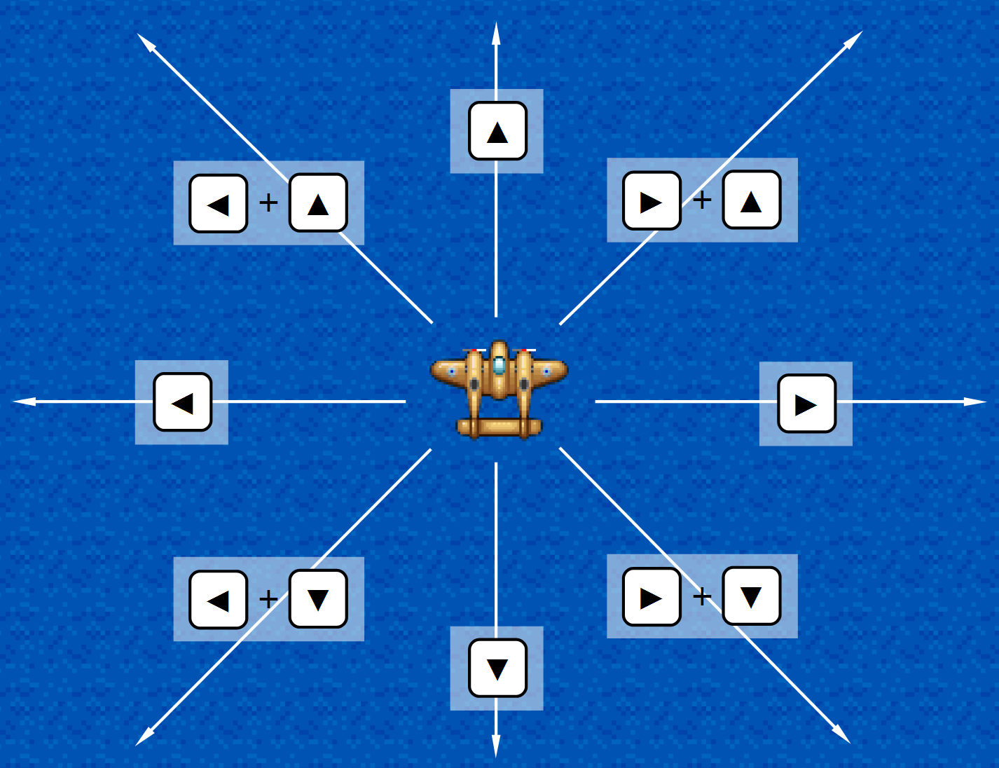 Note that we set the velocity to zero so that the plane stops when the input stops. We also allow the player to input both vertical and horizontal movement at the same time.