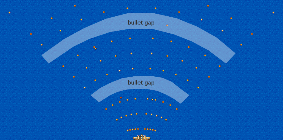 There are two additional phases to this boss fight after the “approaching” phase. First is where the boss just fires 10 bullets concentrated to the player.