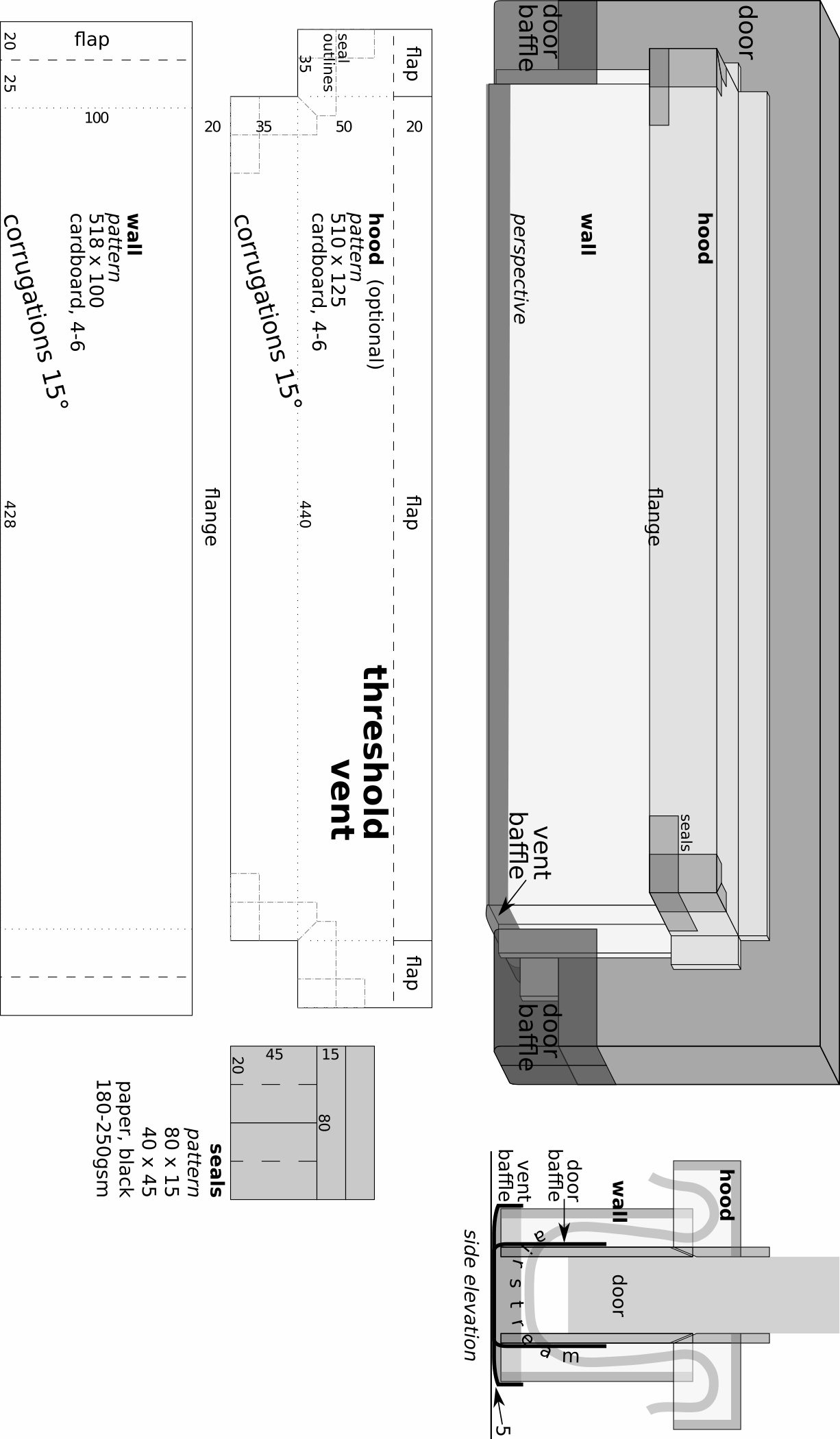 Here are further design constraints, photos, plans, and instructions for making and installing lightproof vents.