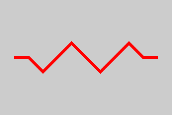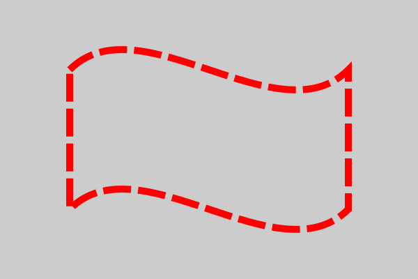 This is exactly the same code as the original Bezier example, but with a dash of [40, 10] applied. Notice that the dashes follow the curves, and even flow around the corners.