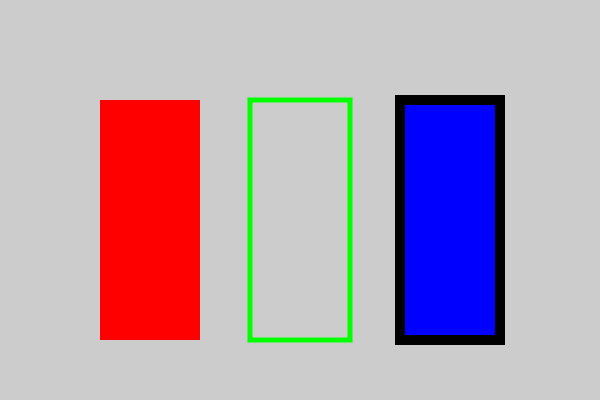So far, we have drawn filled rectangles. Sometimes you might just want to draw the outline of a shape. This is called stroking (as in a stroke of the pen).