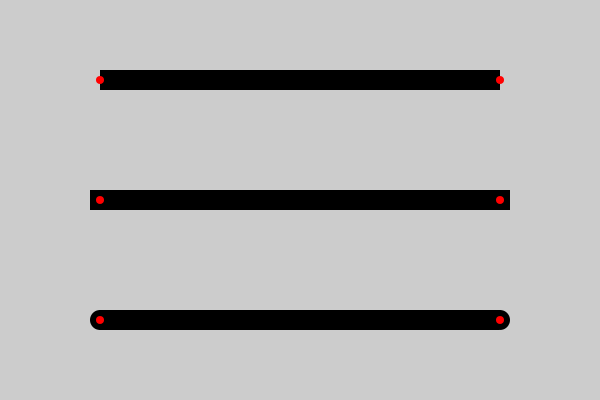 The line cap value affects how the ends of the lines are drawn. There are three options: