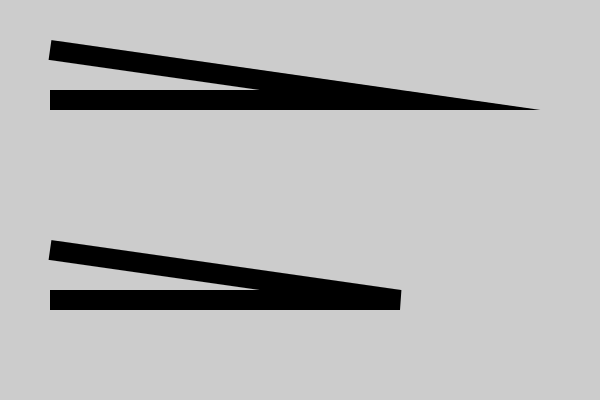 At this point we will briefly mention the mitre limit. One unfortunate side effect of the mitre join is that at very narrow angles, the length of the mitre point can get stupidly long. In fact, as the angle gets closer to zero, the spike gets longer and longer, without limit!