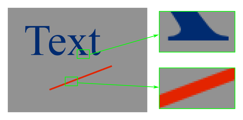 This technique suffers from a similar problem to the one mentioned above. At the point when you draw the text or the line, you are deciding the pixel size of your image. This is then baked in to text. If you later decide you want to print your image as a poster, requiring a much larger pixel size, you would pretty much need to start again.