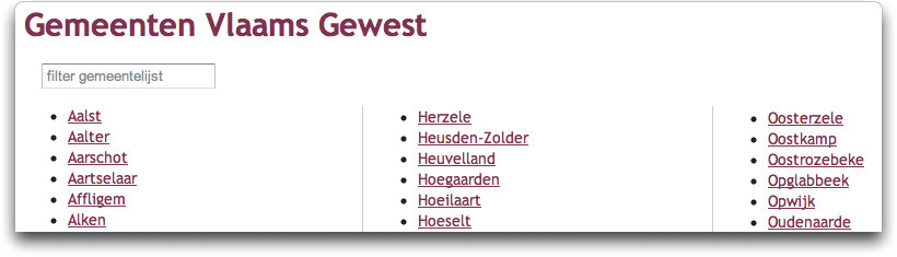 De pagina bevat een lijst van alle Vlaamse gemeenten.
