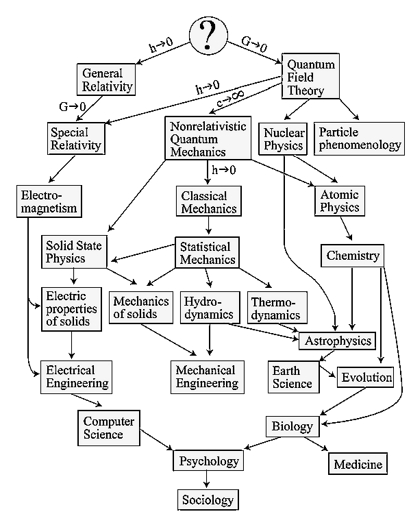 Figure 3.11: Chart of scientific and humanities fields back to the inception indicted by a question mark ? at the top and bottom of this value stream. Prof. Tegmark’s Chart of Disciplines (© Professor Max Tegmark)