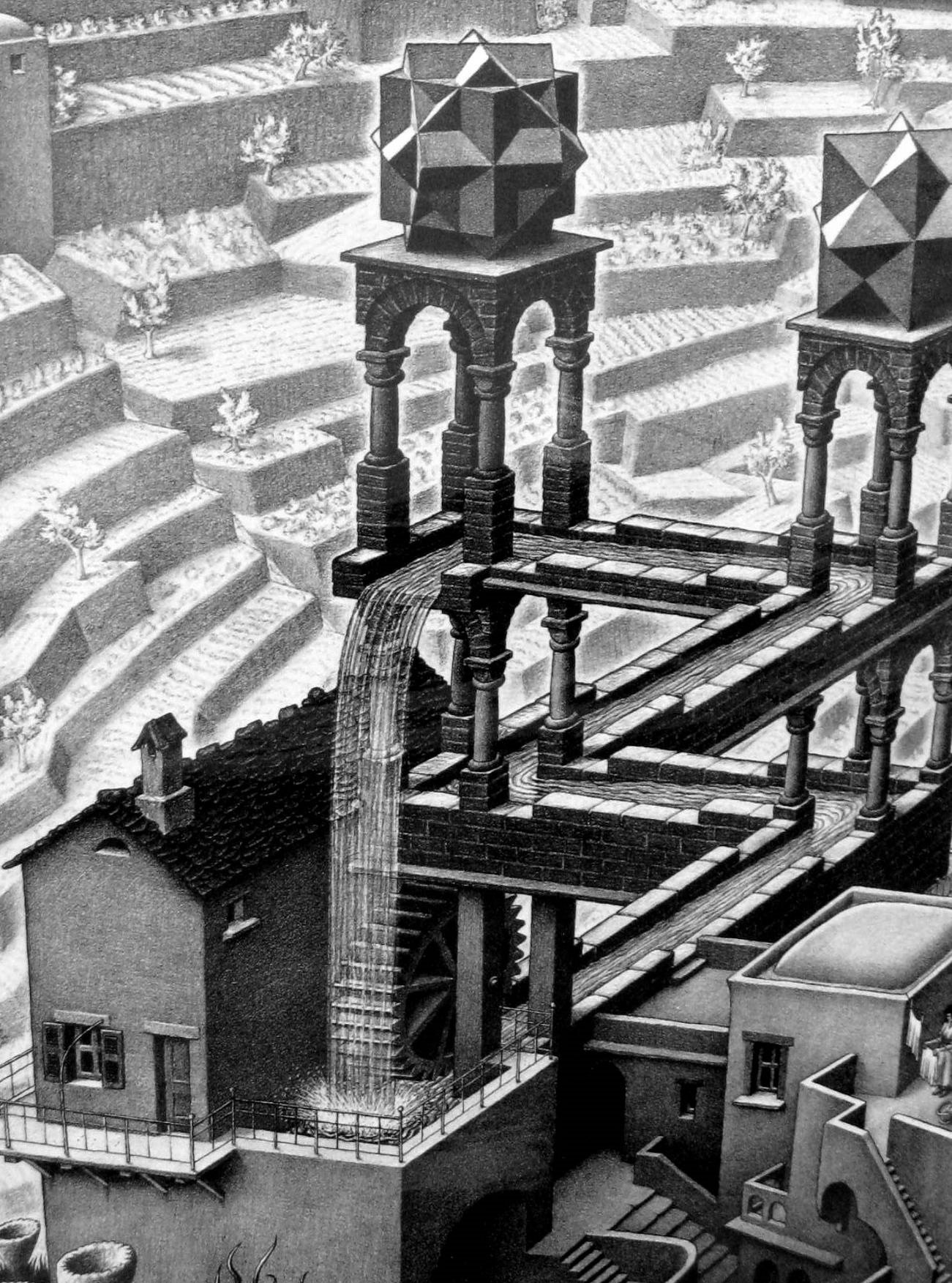Like Douglas Hofstadter did in his book, “Gödel, Escher, Bach,” I am including a picture by Maurits Cornelis Escher within this discussion of circularity. Here you may compare this image of Escher’s to Tegmark’s chart. Escher’s grand image, “Waterfall,” shows how clearly Escher (and Hofstadter) understood this Lean true-north value stream: