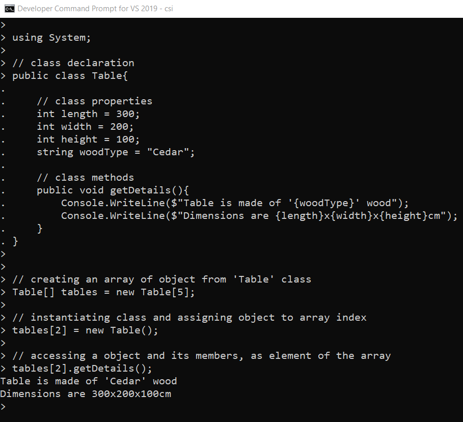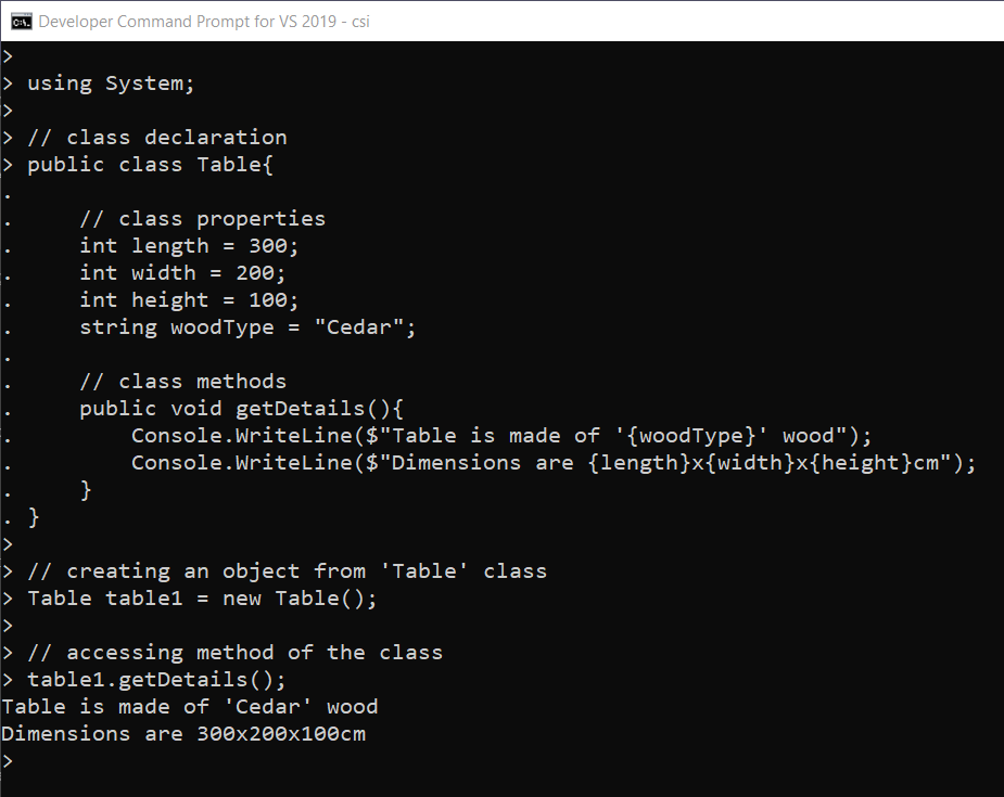 Figure 1-5. Creating Object from C# Class and accessing members
