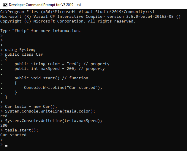So, to create a tesla object from Car class, we will use the new keyword as demonstrated in the Example 1-4, and then access the members of this object using the (.) Dot operator in C#.