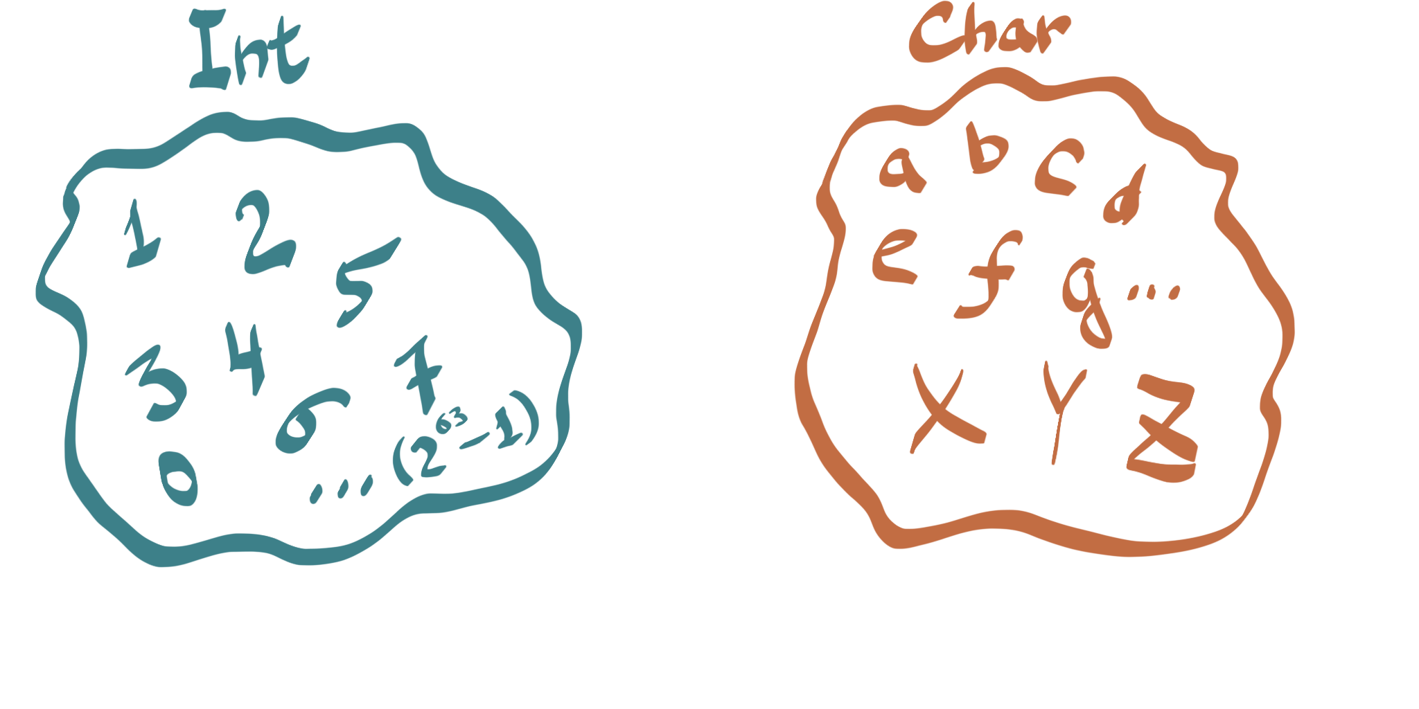 Char is our second foundational type - a pot of all characters we use when writing stuff in different languages, including mathematics or Egyptian pictography if we want to get fancy. It is also a finite type and quite a bit smaller than Int at that.