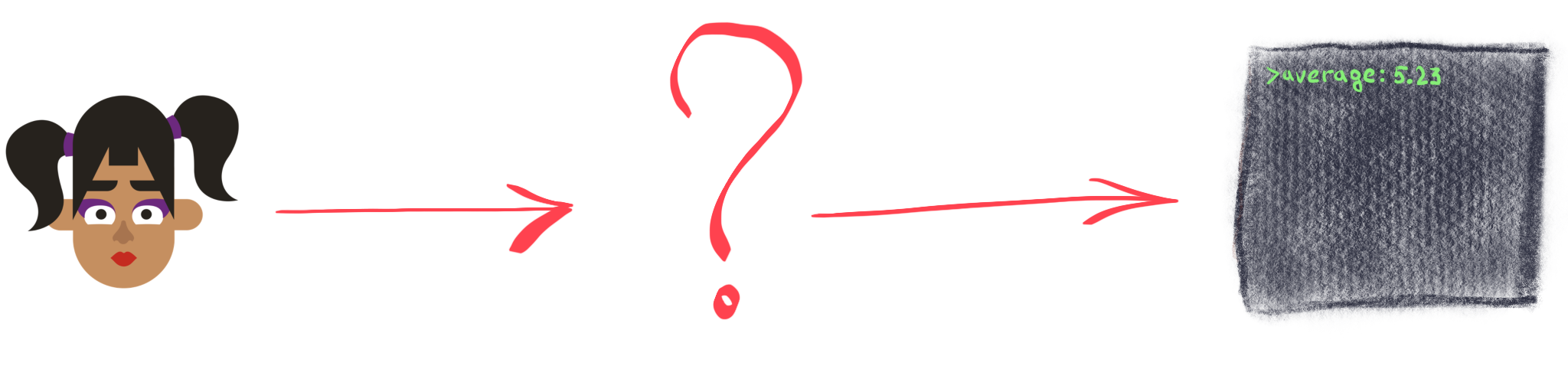 Now our problem is a bit easier - we need to get from a human to a number. “Print”, whatever it is, needs a number to operate. Since our goal is to calculate and show an average value, the previous step needs to take a list of numbers and, uhm, calculate their average: