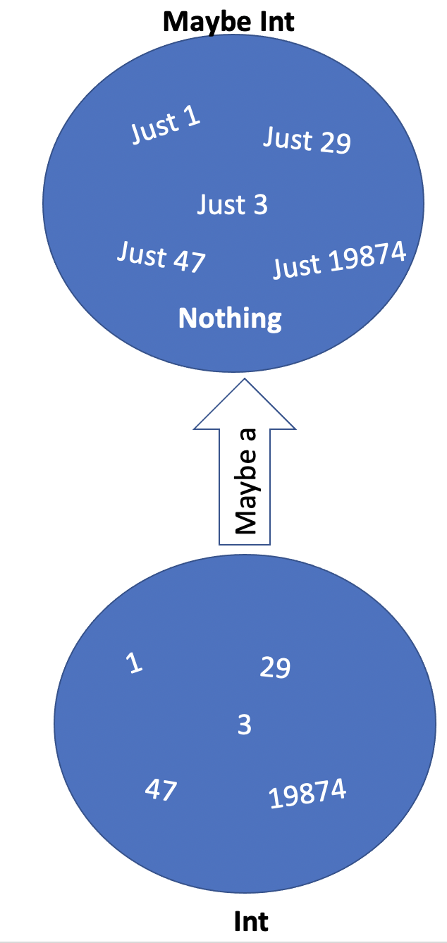 Good. As they say, one is a coincidence, two is a trend, so why don’t we take it further – what if we had some type function type function f (a : Type) = ... or, in haskell, f :: * -> * (a function that takes a concrete type and creates another concrete type from it) that may have different constructor functions, just like Maybe or List – can we define operator <$> for it? Something like: