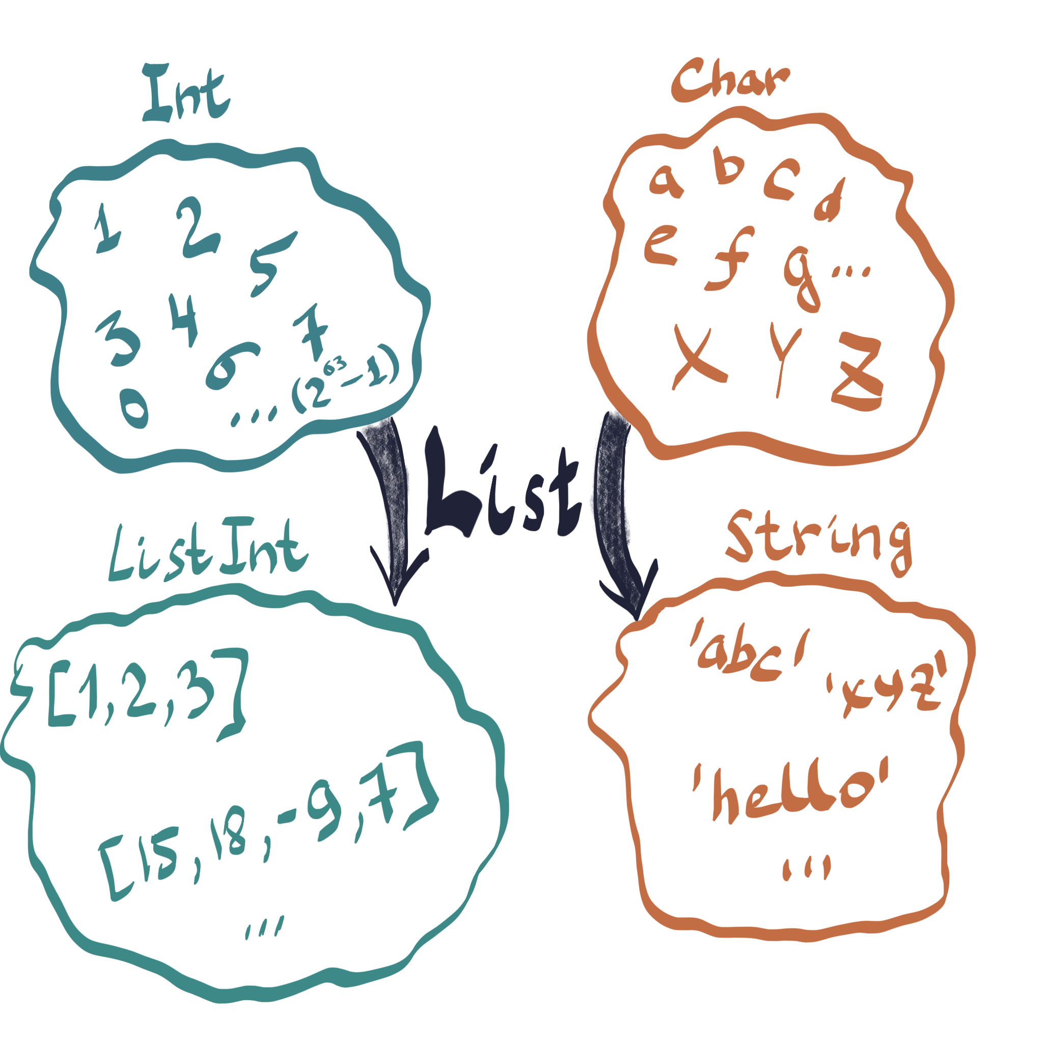 We have just defined our first polymorphic function - it works on lists of any type of values! We don’t care what kind of value is stored in our list, we only care about the list’s structure - you will see this as a recurring theme now and again, and this is another powerful aspect of typed functional programming. You define functions that work on types created from other “argument” types regardless of what these argument types are - you only care about the structure that the type function gives to a new type. Just like a “circle” is an abstraction of the sun, vinyl record and a coin, a type function is an abstraction of a lot of different potentially not very related entities. If you already started learning Haskell and got stuck on monad tutorials - this might be exactly the issue, being mislead by false analogies. A circle is not the sun or a vinyl record, but it captures some common quality of both - they are round, even though at the same time the sun is hot and huge and a vinyl record can make you feel sad. The same with Monads - it’s merely an abstraction of some useful quality of very-very different types. You need to learn to see this abstraction, without being lost in and confused by analogies, recognize it as such, and it will all make sense. Just wait till chapter 3.