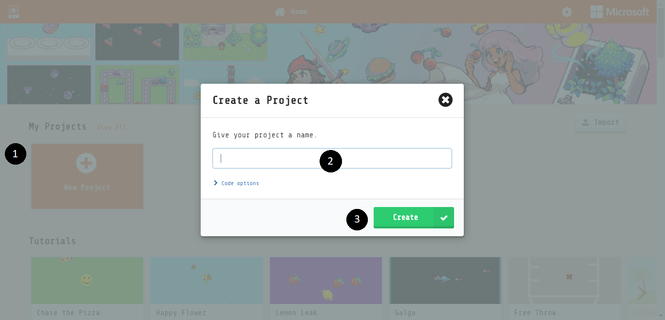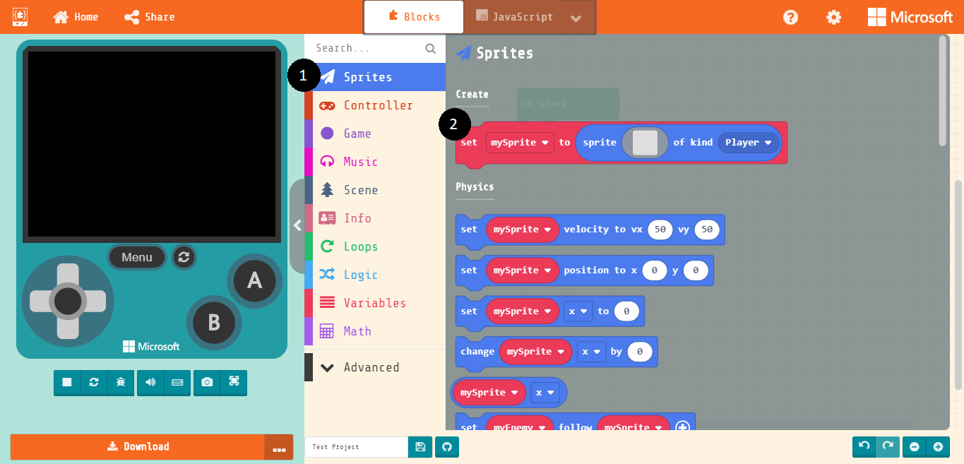 - Create a new project in MakeCode Arcade.